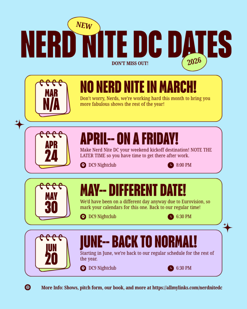 ust a reminder, Nerds– there is NO NERD NITE DC this month!